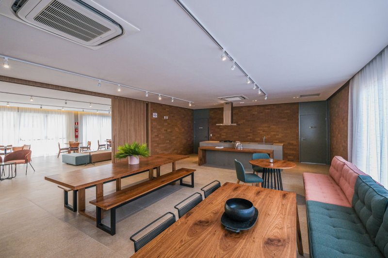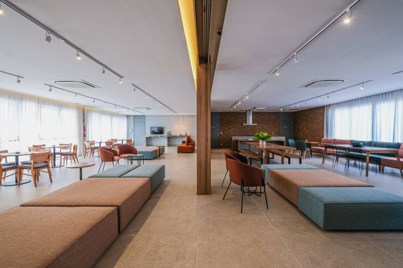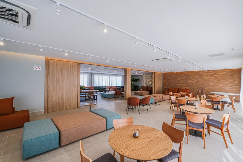 Áreas comuns: portaria, boulevard de acesso, bicicletário, salão de festas com espaço gourmet e copa, WC feminino PNE e WC masculino, PNE, praça de apoio ao festas, pista de skate, playground aventura, playground baby, praça central, piscina infantil, piscina adulto, solarim, redário, agility, churrasqueira com WC masculino PNE e WC feminino PNE, quadra recreativa, lobby, fitness, praça de apoio ao fitness, beauty care, pet care, salão de jogos e brinquedoteca.